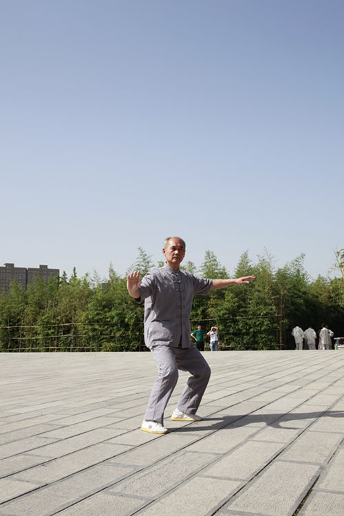 第二个是和平门辅导站表演的《基本功组合》,这些拳友学拳时间不足两年,但刻苦勤奋,在陈全忠大师的悉心指导下,进步很快。内练精气神外练筋骨皮,日常扎实的基本功训练,是保证体能和技能不断提高,规范动作从量变到质变的有效手段。大师集合多年的练拳心得编排的这套基本功处处体现了陈氏太极拳阴阳开阖,松沉柔顺的特点。表演者端庄舒展的动作,全神贯注的神情,为我们带来视觉的享受。尤其场上的82岁的李增富老人,被大师称为“老黄忠”,更是一丝不苟认真演练。博得阵阵掌声。