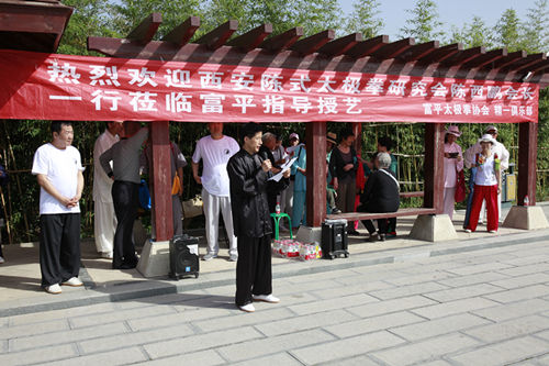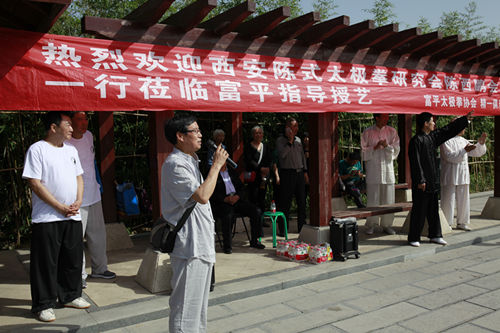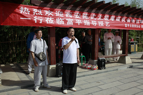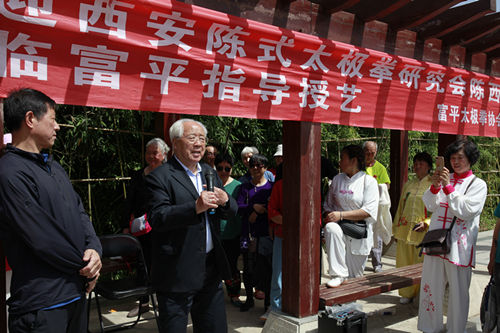 建国门辅导站王长春副站长:今天到富平参加月会,感触颇多,富平人杰地灵,藏龙臥虎,短短几年,陈氏太极拳在忠吉、存良等人的努力下,蓬勃发展,队伍壮大,水平提高,最可贵的是使练太极拳的人身心健康,精神矍铄!对陈氏太极拳的传承做出了不可磨灭的贡献!在此深深的感谢富平太极拳人的盛情款待!