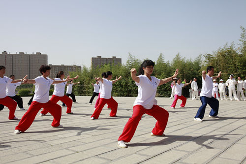第九个是陕压俱乐部辅导站的功夫扇和富平监狱辅导站的《太极精要十八式》,领衔负责是张存良。,他今年上半年最大的收获,受庄里小学王校长、觅子小学教导处张主任的邀请,分别指派张文艺、马煜昱、吕淑英三位教练去这两个小学传授推广陈式太极拳,受教教师和学生合计一千五百余人。很好的配合了武术进校园活动。