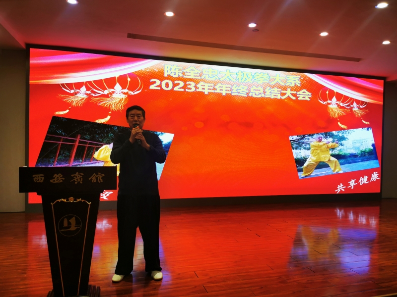 2023年12月30日周六上午10点30,在西安宾馆延年阁二楼宴会厅热烈的召开了西安陈全忠太极拳大系年会。来自省内外近300人参加了本次盛会,也是事隔3年疫情后首次大聚会。充分显示了大系会员的凝聚力和向心力。